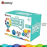 - The move & groove is a baby box set developed to encourage fine & gross motor skills. Suction cup The Rainbow reel to any smooth surface, and baby can bat at the wheel, a developmentally appropriate skill at this age. The spinning wheel reveals a rainbow of mesmerizing colors. The 2 mini-shakers are the perfect size for baby to hand grasp and shake. The bumpy ball has chunky sized bumps to encourage reaching, grasping, and transferring from one hand to the other.