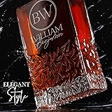 - Are you looking for stylish and excellent quality rocks glass?Or a perfect wedding gift that was beyond the "usual" ? Drinking fine spirits isn't an activity, it's an experience. And that experience requires the finest drinking accessories available.Beautifully engraved Whiskey Decanter Set that holds 27 oz of your favorite spirit. Comes with 4 Rocks Glasses that are engraved the same as the decanter. Great for a wedding gift, groomsmen gift, housewarming gift, birthday gift, father's day gift and more. Showcase your name or your initials when choosing the option for free engraving. This durable gift option features a solid base that weighs approximately three pounds and a sturdy stopper to keep your beverage fresh. PRODUCT DETAILS: ★ 800 ml Whiskey Decanter - 8.72" height ★ Rocks Glasses - 3.8" height ★ Holds 27 oz - 800 ml of whiskey. ★ Each glass holds 9 oz. of whiskey. ★ 9 Design Options.