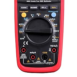 UNIT True RMS Digital Multimeter Kit UT139C. 6,000 counts. Measures AC DC voltage (600 V max), AC DC current (10 A max), resistance, capacitor tester, frequency, temperature, diode test, bandwidth, etc Auto/manual ranges switchable multi meter digital. Relative mode. MAX/MIN. Data hold. LCD backlight. Auto power off Safe & Durable ohm meter multimeter. Safety rating: CAT III 600 V. NCV detection feature effectively checks electrical status through measuring EM field intensity. Full range protection (600 V) Troubleshoot home appliances, light fixtures, sockets and electrical panels. Besides, great volt meter and multimeter for checking automotive battery voltage, alternator output, etc Thick rubberized cover and quality built-to-last electrical kit. Ideal for electricians. Diagnose automotive, industrial and household electrical issue in a breeze
