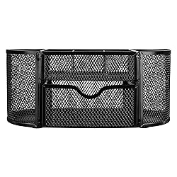 Desktop organizer with pen holder, pullout drawer, and other compartments Ideal for use in offices, workspaces, businesses, and homes Durable commercial-grade steel construction Stylish mesh surface that promotes airflow and helps prevent dust build-up Scratch- and chip-resistant powder-coated finish