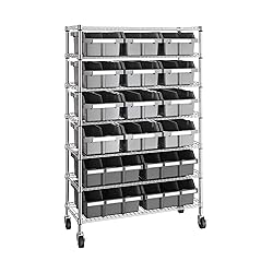 Seville Classics Heavy Duty NSF Bin Rack Solid Steel Wire Shelving Storage Unit, Patented Organizer for Garage, Warehouse, Office, Restaurant, Classroom, Kitchen, Gray, Includes 16 Bins