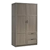 Sauder Select Multipurpose Bedroom Armoire Wardrobe Closet Pantry Storage Cabinet with Storage Drawers and Hanging Rail, in Silver Sycamore