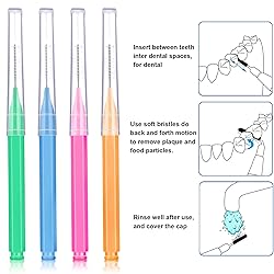 - 100 Pieces interdental brush toothpick dental tooth flossing head oral dental hygiene interdental brush dental flosser toothpick cleaners tooth cleaning tool set red purple yellow gray white Features: Suitable for daily use: Toothpick tooth cleaner prevents bad breath and has prevention of tooth pattern and oral problems. It is a necessity for every family, keeping teeth white and teeth healthy and making breath fresh. Soft material: The material of these toothpicks brush is soft and comfortable, would not hurt your teeth, safe for your use. Specifications: Quantity: 100 pieces Color: as pictures show Size: as pictures show Package includes: 100 x Interdental brushes Warm notes: Pointed items, please keep away from children. Manual measurement, please allow a little errors on size