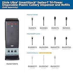 - The Dixie Ultra® SmartStock® Series-T Polypropylene Disposable Plastic Fork Refill is designed for use in the Dixie Ultra® SmartStock® Series-T Tri-Tower Disposable Plastic Cutlery Dispenser (DUSSTDSP3). Pre-counted and pre-assembled SmartStock® refills make it fast and easy to restock an empty dispenser. Just pick up a new cutlery refill, slide it into the dispenser, rip and pull away the binding tape, close the door and you’re done. It’s really that simple! Dixie Ultra® SmartStock® Series-T Polypropylene Cutlery is available in Fork (DUSSPF5), Knife (DUSSPK5), Teaspoon (DUSSPT5) and Soup Spoon (DUSSPS5) refills, as well as Polystyrene Fork (DUSSF5), Knife (DUSSK5), Teaspoon (DUSST5) and Soup Spoon (DUSSS5) refills.