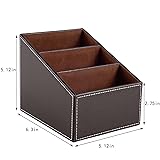 RHCSZ TV Remote Control Organizer/Caddy with 3 Compartments,PU Leather Remote Holder Bedside Table Top, Storage Box, Mobile Phone and Media Accessory Storage,Desk Organizers(brown)