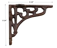BLACK MOUNTING SCREWS INCLUDED! SMALL CAST IRON BRACKETS EACH BRACKET MEASURES 3 5/8" FROM TOP TO BOTTOM AND EXTENDS 4 1/8" FROM THE WALL! NEW MADE TO LOOK OLD!