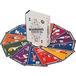 - You’ve always wanted to run faster and further. Maybe you already run and would like to advance to the next level or maybe you would like to run but don’t because you think running is difficult and uncomfortable. We designed Running Stack 52 for you. We picked 52 of our favorite running drills, exercises, and workouts and put them on large playing cards. This deck is your running coach. Run faster and further comfortably with less effort and have the time of your life getting in the best shape of your life! About Stack 52 and founder, Sergeant Volkin Our mission is to make fitness fun and accessible for everyone. Sergeant Volkin has a master's degree in science, has authored 5 books, and has over 20 years of fitness experience. The US Army awarded Sergeant Volkin a medal for the fitness programs he designed for the troops. Stack 52 exercise games have been sold in over 24 countries. What's in the Box: Running Stack 52 contains 55 cards. There are 7 different colors with each color representing a different Run Coaching Topic: 8 Orange Cards: Pre-Run Joint and Muscle warm up cards. 8 Blue Cards: Running Fundamentals cards. 8 Green Cards: Agility, Balance, and Coordination drills 8 Pink Cards: Running workout cards 7 Purple Cards: Running technique drills 5 Red Cards: Essential strength and conditioning exercises for Runners 8 Yellow Cards: Post run stretches for runners 3 Instructional Cards Recommended Equipment (Not Included): Running shoes, stopwatch or stopwatch app, yoga mat or soft surface.