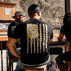 - All Grunt Style Shirts are Covered by Our "Beer Guarantee" We stand behind our quality because we're the Veterans and Patriots that made it for you.WHEN YOU AMERICA TOO HARD EVERYTHING WE SELL IS GUARANTEED FOR LIFE!TearsHolesLoose ThreadsBeer StainsEven Stains from Defending the American FlagWe are proud of what we do and we want you to be proud of what you wear. Use our Beer Guarantee to ensure your Grunt Style gear is always perfect.Betsy Rifle Flag- Black- Shirt for Men - Grunt Style Patriotic Shirts Take Pride in self, military and in Country. Also available in Heavy Metal.Our Graphic Tees are crafted with the following details:100% combed ringspun cottonUltra-Comfortable and Soft for All-Day WearTagless, Itch-Free DesignA Ribbed Collar that Won't Lose its ShapeMachine Wash ColdTumble Dry LowProudly Printed in Carol Stream, IL