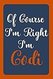 Of Course I'm Right I'm Codi: Notebook Gift, Codi name diary gifts, personalized notebook Codi, Gift Idea for Codi, 120 Pages
