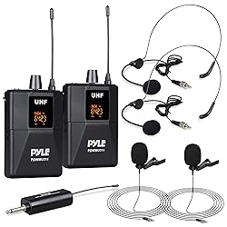 Sistema de micrófono Pyle Dual UHF, juego de micrófonos inalámbricos profesionales portátiles, kit de micrófono inalámbrico con auriculares/micrófono Lavalier, transmisor de correa, receptor, karaoke y conferencia, Pyle PDWMU211