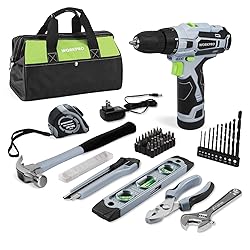 - WORKPRO 12V Cordless Drill Driver and Home Tool Kit, Hand Tool Set for DIY, Home Maintenance, 14-inch Storage Bag Included