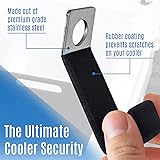 Versatile Cooler Security: The IMPRESA Cooler Lock Bracket, compatible with Yeti and RTIC, provides robust security for your cooler, keeping it safe from theft. Its stainless steel construction and rubber-coated finish offer durability and scratch protection Dependable Locking Mechanism: Featuring a hole for padlocks, chains, or cooler lock cables, this cooler locking bracket ensures your cooler remains secure during transportation. Its practical design accommodates various locking methods for peace of mind Universal Fit Design: This cooler tie down bracket fits most medium to large coolers, making it an adaptable choice for securing multiple models. Its versatile compatibility makes it ideal for those using different coolers for various activities Comprehensive Protection Set: The package includes two cooler locking brackets, allowing you to secure both sides of your cooler or multiple coolers simultaneously. This feature enhances security, catering to those with extensive outdoor gear Durable and Reliable: Constructed from premium-grade stainless steel, these cooler locks are built to withstand rust and corrosion. The rubber-coated finish adds an extra layer of protection, ensuring long-lasting use in various environments