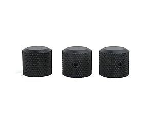 - Guyker control knobs are for sound equipment or rotary potentiometer, for protection and easy control. The switch knobs have a knurled finish around their circumference. Benefits / Features: - Control the tone & volume on the same pot, it has screw hole on the knob. - Material: brass. Durable and long-lasting use. - Compatible with most electric guitars/bass. - Solid brass - CNC machined. Durable and long-lasting use. - Easy Replacement or Upgrade. Specifications: - Inner hollow shaft hole diameter: Approx. 6mm / 0.24in - Material: Brass - CNC machined - 5 Colors Available: Black, Smoke Gray, Chrome, Gold, Rainbow ChameleonPackage including: 3 x potentiometers control knobs