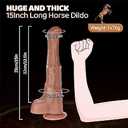 NOVEL TOY FOR COLLECTION AND PLAY - Giant horse dildo made of German PVC, latex-free, non-phthalate, soft and safe.The brown color of this monster dildo is life-like with a really horse dildo. IT IS A CHALLENGE EVEN FOR ADVANCED PLAYER - 15" Length x 2.9" (max diameter), Comfortable,bendable and very girthy. This is a genuine luxury adult toy for play. POWERFUL SUCTION CUP FOR HAND-FREE FUN - Take your big thick dildo experience to the max with the sturdy suction cup for a hands-free filling. Or use in conjunction with a harness.Like bathroom,kitchen,bedroom,timber door,floor and so on. INCREDIBLY REALISTIC SOFTNESS WITH A FIRM INNER CORE - While its rounded lifelike head and veined shaft takes care of business internally,It performs better than a muscle man. CONFIDENTIAL PACKING AND AFTER-SALE SERVICE - We provide professional customer service, if you have any question please let us know,Every sex toy packed in confidencial box, the product information is secret.You can order trustingly.
