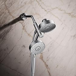 2-IN-1 MULTIFUNCTION SHOWERHEAD: Both showerhead and handheld showerhead are comprised of three spray sensations to suit your every mood. The Purist 2-in-1 shower combo also features a water-saving pause feature to temporarily pause water flow THREE SPRAY SENSATIONS: Full coverage spray produces an encompassing spray ideal for everyday use. Pulsating massage spray targets sore muscles to ease away aches and pains. Silk spray releases a dense, luxurious spray ideal for rinsing ADJUSTABLE SHOWERHEAD: A rotating rail creates virtually endless options for positions – rotate the rail horizontally for a relaxing shoulder massage. Rotate the rail vertically for a traditional hair and body experience EASY TO CLEAN: MasterClean sprayface features an easy-to-clean surface that withstands mineral buildup and maximizes spray performance DURABLE MATERIALS: Premium material construction for durability and reliability. KOHLER finishes resist corrosion and tarnishing