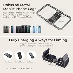 【Whole Solution for Vlogging】SmallRig Professional Phone Video Rig Kit is specially designed for vlogging and live streaming, and supports both handheld shooting and tripod shooting. The kit includes a universal phone cage 2791B, two side handles 2772, a desktop tripod BUT2664, a mini LED light 3286, a Type-C interface shotgun microphone, a power bank holder 2790, a 2-in-1 USB-C PD fast charging and audio adapter,a Lightning to USB-C adapter, 2 velcro cable ties, a carrying case, etc. 【Wide Application】The phone cage is compatible with phones with a width range from 62mm to 86mm. Suitable for most smartphones, such as for iPhone 16 / 15 / 14 / 13 / 12 Pro / Pro Max, for Samsung Galaxy S24 / S23 / S22 Ultra, for Pixel 8 / 7 / 6 / 5 series, for Huawei Mate 60 / 50 / 40 / P Series, and so on. 【LED Light】Video LED Light is a lightweight, portable and stylish mini-LED light, with 0-100% brightness control, CRI95, and color temperature scale from 2700K to 6500K. The light comes with a built-in 2200mAh lithium-ion battery, which is charged via the included USB Type-C charging cable and features a 105-minute operating time (maximum brightness) 【High-quality Microphone】Shotgun microphone’s cardioid pattern reduces background noise in the periphery and focuses on the sound in front of the camera to capture clear directional sound. The compact microphone comes with a standard foam windshield, or you can use the furry windshield if you are using the rig in windy conditions. The microphone is battery-free, plug-and-play, and comes with camera/smartphone cables for your choice. 【Complete interfaces for ecological expansion】The phone cage kit provides multiple 1/4”-20 thread holes and cold shoe mounts for more mounting options. Support the free collocation and combination of accessories, providing more possibilities for shooting and bringing more fun.