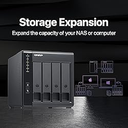 - From the manufacturer safeguard your data with QNAP external RAID enclosure The TR-004 can be utilized as a DAS (Direct-Attached storage) device, allowing you to directly access its content via USB. Featuring four 3. 5 inch SATA drive bays, while supporting a variety of RAID configurations, It give you the ability to store a vast number of files and data while ensuring against potential drive failures. Protects your data against drive failures hardware RAID on the TR-004 is made easy with the QNAP external RAID Manager, supported on both Mac OS and Windows. Now, you can easily configure whatever RAID you prefer, whether its as individual drives, or RAID 0, 1, and 5. With powerful RAID support at your fingertips, never loose data due to drive failure. Quick Facts flexible storage solution the TR-004 is an incredibly flexible storage solution. Simply use it as a DAS and store your files, or even expand the capacity of your QNAP NAS, and create storage pools and snapshots. Powerful hardware RAID supporting most RAID configurations, The TR-004 protects against drive failures. With the QNAP external RAID Manager, easily configure RAID groups, and monitor its health. Capacity: 4 Bay The TR-004 can function either as direct Attached Storage (DAS) or an expansion unit for a QNAP NAS. This model Connects via a USB Type-C port (same form factor as the Thunderbolt 3 port) featuring a hardware RAID controller. The TR-004 supports RAID 0, 1, 5, 10, JBOD, and individual disks.