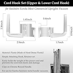 - for Commercial Vacuum Cord Hook fit Eureka Sanitaire Oreck Kent Powrflite 3 SETS Type: Vacuum Cord Hook. Color: Beige. Material: Plastic. Application: Vacuum Cleaner. Simple attaching hook. Fits for Select Eureka Sanitaire models. For use with Eureka Sanitaire metal handle vacuums. Easily holds the weight of the power cord and prevents the cord from knots and damage. Every Product from HASMX will enjoy 30 days Money-back and 18-Months worry-free warranty. If you're not sure whether it fits your model, please email us-includes your Models and serial number. Note - This is an aftermarket replacement Parts. Any brand name is used solely for the purpose of demonstrating compatibility.