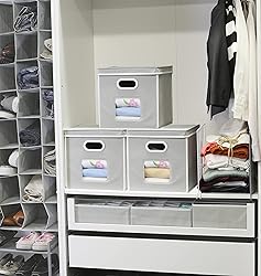 - Simple Houseware Fabric Clear Window Cube with Lid, 12" x 12" Storage Bin, 3-Pack, Gray