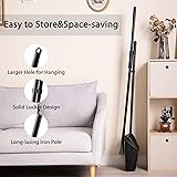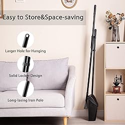 【Broom and Dustpan Combo with Lid】Design with lid - windproof. Dustpan pivots providing secure debris collection and easy, hands-free emptying; Comb teeth edge of the dustpan combs dust, hair and debris out of broom bristles ideal for pet hair and other fine particles 【Easy Storage】Lobby dustpan has pivoting bail and integrated hanging holes allow the broom and dustpan to hang or stand up for space-efficient storage 【Special Split-end Bristle Technology】Eyliden heavy-duty broom has firm black bristles thoroughly pull dirt from corners while special split-end technology at the end of the bristles easy capture and move tiny dust 【Durable Steel Long Handle】Long enough: broom handle -59.8"/dustpan handle -42.5", even tall adults don’t need to bend down when using the lobby broom and dustpan combo sweeping. 4-section interlocking design(dustpan handle only 3-section) for easy storage or custom height adjustment, loop on end of handle makes it easy to hang 【Indoor/Outdoor Angle Broom and Dustpan Set】14.1" sweeping width, 3-layer strong PET memory bristles won’t weaken or break during tough cleaning jobs, resist bending and hold their shape. Professional bristles make the broom ideal for use on a wide variety of surfaces including concrete and carpet