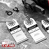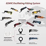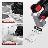 【Diamond Cutting Edge】This premium long lasting flush cutting diamond oscillating saw blade has 5 times longer life than carbide grit blades in tough applications 【Precise & Clean Cut】 Diamond grit edge has a kerf approx. 1/16 inch (1.6 mm), which can achieve a perfectly clean and precise cutting effect. Oscillating diamond blade is particularly suitable for precise cutting and short cutting as well as precise working right into corners and on edges 【Design for Tough】This diamond oscillating multi tool blade is used to remove defective tile grout, clean up the mortar, plaster, and porous concrete to clean and rework planked deck joints 【Application Scenarios】EZARC diamond oscillating saw blades can be used for bathroom renovation, flooring work, trimming and correcting work, remove grits or grouts, clean up the mortar before fixing, and various household maintenance around the house 【Universal Fitment】 EZARC oscillating multitool blade set includes two additional adapters, which is compatible with most oscillating multi-tool brands like Dewalt, Dremel, Milwaukee, Fein, Bosch (Non-StarLock), Makita, Genesis, Ridgid, Craftsman, Rockwell, Black & Decker, Porter-Cable, Worx, AEG, Ryobi and more