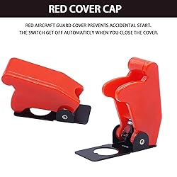 【Power and type】Heavy Duty Rocker Toggle Switch with Red Aircraft Safety Cover;Rated Voltage and Current: 10A 125V 2 Pin ON/OFF;Connector type: SPST.Material: metal and plastic 【Size】Mounting hole diameter:12mm/0.47"; Total Size :28x16x50/1.1"x0.62"x1.96". 【Easy installation】The red cover is easy to install and operate. When the cover is closed, the switch is also closed.Prevent the switch from accidentally touching and accidentally starting;Each of the terminals has a machine screw for quick connections, but also easy to be soldered. 【Wide application】It is widely used in various cars, boats,etc. 【Buy with confidence 】Package include:2PCS toggle switch and 2PCS red cover .for your best choices,the most comfortable goods ever have.If you have any questions, please contact us in time and we will help you solve them.