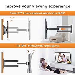 TV Wall Mount - ideal for most 13" to 32" LED, LCD, and Plasma TVs that weigh up to 33lbs (15kg) Full motion - 180° swivel, ±15° tilt, 360° rotate, extended to 14.25" from the wall, meet all of your viewing angles Compatibility - compatible with VESA 75x75mm and 100x100mm, fits for concrete wall/wood stud. Do NOT mount on drywall. Features - removable TV plate designed for single-person installation, durable steel construction for lifetime use Package - 1×TV wall mount, 1×hardware kit, 1×user manual Note:Plate size:100x100mm, please check if there will have potential cable blockage before purchase.
