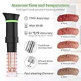 Flavorful Dishes: Sous Vide cooking maintains the nutrients and moisture of the ingredients, and the taste of the ingredients is more flavorful than normal cooking at a constant temperature for a long time Accurate Control: Based on thousands of food tests, this sous vide cooker could accurately control cooking time and temperature Clear Indicator: The red ring lamp shows the setting status and heating to a setting temperature, the lamp ring goes green to indicate that the it reaches a setting temperature, and the blue ring lamp is finish Intelligent Design: The power is 1000 W. Our sous vide cooker features a wide temperature range of 77.0-198.5 °F (25-92.5 °C), and the max timer setting of 99 hours Efficient Water Circulation: Water temperature kept constant with 360 degrees water circulation. Fiber of food will not be destroyed