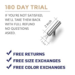 STURDY MATERIAL: Our t bar pulls knobs are made of premium stainless steel that don't easily chip or wear off CONTEMPORARY DESIGN: The single knob has a streamlined appearance, which can complement and accentuate the lines, colors, and textures of your space EASY TO INSTALL: The kitchen knob is a simple solution and straight forward to install. And we provide two different sizes of screws to meet different needs EXCELLENT SERVICE: We always focus on efficiency and value your time, we will provide fast solutions when you need assistance MEASUREMENT: Total Length: 2 inch(50mm); Diameter: 1/2 inch(12mm); Height: 1-1/4 inch(32mm)