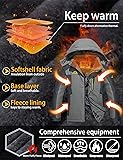 【Water Resistant】Mens winter coats made of water resistant breathable fabric, also can fights bad rainy or misty weather, keep your body always dry and comfortable when you are skiing, snowboarding, hunting, hiking. (Zipper head has been adjusted on the right) 【Windproof】1. Adjustable cuffs and adjustable hem with buckle, help seal in warmth; 2. Detachable storm hood, stand collar, and full zipper closure, all the well-designs keep out the wind effectively; 3. Wear a soft shell that is highly windproof and warm. 【Fleece Lining】The mens softshell jacket with Professional water resistant coated, fleece lining jacket and soft fabric, keep you warm in cold weather. 【Multi pocket】2 zippered hand pockets, 1 Water resistant zippered chest pocket, 1 internal big pocket, and 1 internal secure pocket, suitable for storing phone, wallet, passport, and other accessories. 【Occasions】The mens winter jacket is ideal for skiing, snowboarding, snow sports, hiking, mountaineering, camping, climbing, biking and other winter outdoor activities.