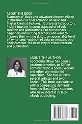 - ABOUT THE AUTHOR Appolonia Okwu has been a passionate writer, an Office Administrator, a Social Worker and other unmentioned capacities. She has written several articles and two books. This book was written with a compelling demand from her Basic Class students who have interest in self-eBook publishing. ABOUT THE BOOK Summary of Basic and Advanced Amazon eBook Publication is for new authors, beginners and writing teachers who want to improve their writing skill to an appreciable level of write- and –publish eBooks on Amazon. This book presents introductory insight into the Amazon standard of eBook creation and publications.