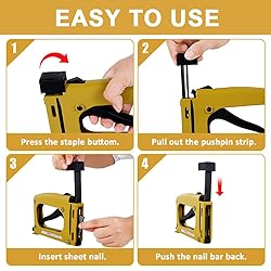 【High Quality】The point driver alloy shell is made of high-strength tungsten steel, precision high-pressure vacuum casting, sturdy and durable, lightweight and convenient, the surface after several high-polish treatments, quenching and processing of more wear-resistant. 【Professional Design】Picture framing tools are precision manufactured,attention to every detail, the magazine with integrated design for safer nail hitting. Just rotate the point depth adjustment to control the depth of the nail. Ensures the stability of the point driver, it won't tear or dent backing material or split expensive wood frame. 【Comfortable Grip】The picture framing tools rubberized handle for a comfortable grip and 50% less gripping power to operate it. Both professionals and beginners can make photo frames efficiently and perfectly. 【Easy to Use】Manual design’s framing point driver, no need for an air compressor, suitable for workplaces where no air pressure source is available, ideal for personal handmade DIY production, easy to operate. 【Pragmatic】The picture frame stapler specializes in fixing photos and picture frames. It can also be used for other purposes, fixing other materials, decorating, repairing furniture, crate making, reinforcing doors and windows, restoring carpets, etc.