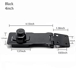 Sturdy Construction: the 4 Inch Keyed Hasp Locks Built with durable steel and bronze, this 2-pack of keyed hasp locks provides lasting use and added security for doors, cabinets, and gates. Give U Safety & Privacy: This 2-pack of keyed hasp locks Keep those pesty intruders away with this high quality door latch. Protection to Anything: Clasp lock designed for security applications on doors, chests, fridge, boxes, gates and cabinets. 2 Directions Mounting :This Twist Knob Keyed Locking Hasp Use on left or right hand applications, 3 stainless screws included. the locked latch all come with 2 same keys. Black Beautiful appearance: the Black Hasp Lock Catch Latch Featuring a brushed finish and traditional style, these locks add both functionality and elegance to your space.