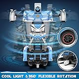 Two In One Toy Cars: Combined with car and robot, this RC transformer car could transform automatically from car to robot back and forth fluently when you press the button on the remote control. Keep your child entertained with the toy that never gets old - cruise down the streets in a drifting sports car or man the battlefield with an intergalactic robot. One Button Transformation & Automatic Demonstration: When you press the button on the right, this RC drift car will switch smoothly from the car to the robot form, which is easy to switch back and forth. The automatic demonstration function will bring you surprises!! The unique universal wheel design allows you to enjoy 360-degree rotation and drift, forward & backward are very simple and easy to operate. Multiplayer Combat Fun: Equipped with cool LED police lights and perfect size, our RC cars for kids bring the most realistic experience. The 2.4G Hz remote control technology ensures that there will be no signal interference between each car, so parents and children or children themselves can use different cars to play together happily. Safe & Durable: This remote control robot car is made of durable ABS plastic material, non-toxic, durable, and safe for kids. The anti-fall car body is strong and resistant to fall and deal with a variety of barbaric children's operations, ensuring your kids have lasting and happy entertainment. Perfect Car Toy for Kids: With a cool box package, this excellent transform RC car is a perfect toy for boys and girls who are obsessed with robots and cars/police cars. Suitable toys for 3 6 7 8 5+ year old boys and girls, ideal present for kids’ birthdays, Christmas, or other festivals. Strong quality guarantee, for any problem you suffer, please contact the seller directly first, and we will solve it perfectly for you.