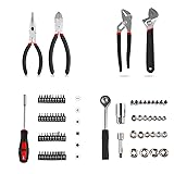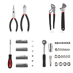 The tools are heat-treated with carbon steel and placed in a suitable box,compact carrying case for storage and portability. This 95 piece kit contains the basic tools needed for daily use and can be used for most small repairs around the house. It can be used to repair leaking kitchen or bathroom faucets, repair bicycles, or DIY. Include utility knife, water pump plier, screwdrivers, diagonal cutting plier, combination wrenches, ratchet handle, level, bits, hex key wrenches, spark plug socket, drive Adaptor, drive extension bar, bit driver handle, adjustable wrench, ong nose plier, drive-sockets. As a good choice for you, it is suitable for craftsmen, construction workers and mechanics.