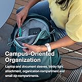 Laptop-and School-Ready Layout - Padded laptop sleeve fits most 16" laptops; also includes tablet/document sleeves and a full-featured front organizer Streamlined for Daily Use - A compact silhouette and sleek profile made for college students and an ideal commuter bag for women and men alike Comfortable & Breathable Carry - AirScapeape technology features a close-to-body backpanel and offers lightweight support with ventilation to keep you comfortable all day long Expandable and Functional Storage - External compression straps help to stabilize the load or secure a jacket, yoga mat or skateboard; daisy chains let you clip on extra gear Built with Purpose & Recycled Materials - Constructed from bluesign APPROVED, 100% recycled polyester main body fabric for quality performance Item Dimensions: 18.1H x 13W x 9.4D in; Item Weight: 1.64lb