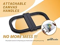 - NO MORE MESS: Experience a clean paint pouring process with our Splash N Color Canvas Holder. Keep your hands spotless as you create mesmerizing artwork effortlessly. EASY CANVAS TILTING: Unlock endless creative possibilities! Our innovative painting handle allows smooth canvas tilting, enabling you to spread paint evenly and even hold the canvas upside down for unique effects. ACHIEVE MAXIMUM CONTROL: Enhance your acrylic pour painting technique with our canvas handles. The finely textured grips provide exceptional control while tilting your pouring paints on canvases of all sizes. MADE EASY FOR YOU: Our canvas handles pouring kit includes all the necessary hardware for effortless installation. Simply screw them into the bottom of your paint canvas and get ready to create breathtaking masterpieces. REUSABLE HEAVY DUTY MATERIAL: Crafted from durable materials, these canvas handles are built to last. Add them to your acrylic pour painting kit and enjoy their lifetime usability. Rinse with cold water for quick cleaning and endless reuse.