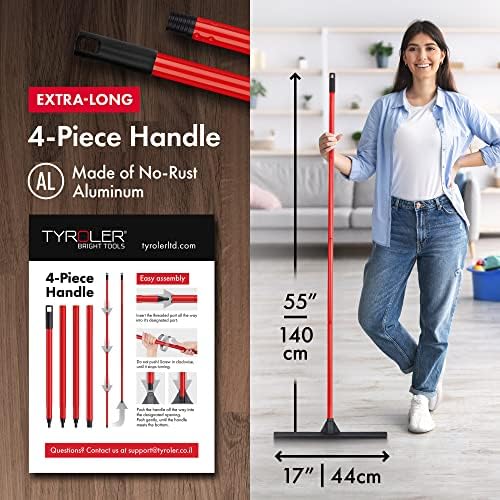 Tyroler Rubber Floor Squeegee Heavy Duty 17", Deck Squeegee Outdoor for Floors with 55" 4 Part Handle, Perfect Outdoor Squeegees for Patio, Tiles, Marble, Garage, Shower, Window