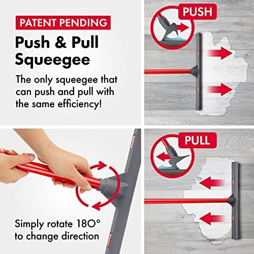 - PUSH & PULL ACTION: With a simple twist of the handle, this patent-pending push-and-pull floor squeegee provides exceptional cleaning performance in multiple directions. Simply rotate the handle 180 degrees to effortlessly push or remove spills using this versatile squeegee for floor.