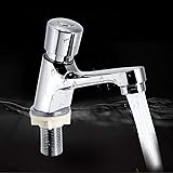 Water Saving Time Delay Faucet, Public Ktchen Bathroom Chrome Plated Self Closing Basin Sink Tap Water Saver Faucet for Home or Outdoor Single Cold