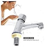 【Chrome Plated + Brass Material】Single basin faucet inner tank is made of high-quality brass material, with excellent chrome plating treatment, durable and not easy to damage. 【Delay Function】Water valve auto shut off bathroom faucet has a delay function. The automatic shutdown delay is 4-6 seconds, which can help you effectively save water without causing waste of resources. 【Easy to Clean】Cold water faucet can be cleaned with mild soap to ensure that it does not change color. Usually, it only needs to be cleaned with water or wiped with a towel after use. 【Push-In Design】Auto shut off faucet adopts push-in design, smooth surface and easy to use. And the water will not stain your kitchen countertop when you use it. 【Easy to Install】The faucet comes with some installation accessories for easy installation. Faucet is suitable for use in family kitchens, bathrooms, and hotels.
