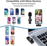 Easy Automatic Connection: This innovative wireless lav microphone is much easier to set. No Adapter, Bluetooth or Application needed. Just plug the receiver into your devices (USB interface), then turn on the portable mic, these two parts will pair automatically. Note: Make sure the USB OTG in Setting of your device is on Omnidirectional Sound Reception: Equipped with High Density Spray-proof Sponge and High-sensitivity Microphone, our device clearly records every detail of the sound regardless of surrounded environment. Our Noise Reduction Technology cuts off any noise interference while recording so as to ensure the sound quality Full Compatibility: The upgraded wireless clip-on microphone is equipped with a Type C connector and a USB A to Type C charging cable. Compatible with Android smartphones, iPhone 15 series, laptops etc, the handheld mic is suitable for interviewing, online conferencing, podcasting, vlogging, live streaming. Note: This lavalier microphone is only compatible with Android phone and iPhone 15 series Universal Wireless System: The small lapel microphone is free of wire. You can hold it by hand or clip it on your shirt. Enable to cover 50ft for signal, helps you get rid of messy wire and clearly recording or taking video at a further distance indoors or outdoors Rechargeable Transmitter and Receiver: The wireless lavalier microphone is built in 65MAH rechargeable batteries up to 4.5 hours operation time with only two-hour charging time