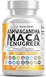 Clean Nutraceuticals Ashwagandha Maca Root Fenugreek Supplement with Tongkat Ali Ginseng - Assists with Stress, Mood & Thyroid - Ashwagandha Capsules Fenugreek Caps - 1 Pack