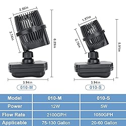 INCREASE WATER CIRCULATION: This wave maker pump simulates natural currents, such as rivers and oceans, providing a gentle flow to exercise and shape your fish body. It is designed to blow away fish feces and food debris, creating a healthy living environment for your aquarium pet STRONG MAGNETIC AND ULTRA QUIET: The aquarium circulation pump uses a strong magnetic bracket and suction cups, which make the adsorption more stable to prevent the pump from falling off. The stable magnetic base reduces noise and is easy to install on any position of the fish tank wall 360° ROTATION AND POWERFUL: The submersible powerhead can be rotated 360 degree , providing full control of the flow direction, can make the water temperature quickly equalize. 12W 2100GPH single head makes strong waves to circulate the water quietly and efficiently APPLICATION: hygger wave maker for aquarium creates water movement for fish to swim in, improve water circulation and increase the oxygen level of the water, which is beneficial to the health and growth of the water pet. Safe to use in freshwater, saltwater, various fish tanks and coral aquariums PLEASE NOTE:Due to the strong suction force of the magnetic base, please rotate the base at an appropriate angle and then separate the base. When installing, please slowly put the other half of the base together with the base inside the fish tank from the side and the wave maker must be 100% submerged into the water