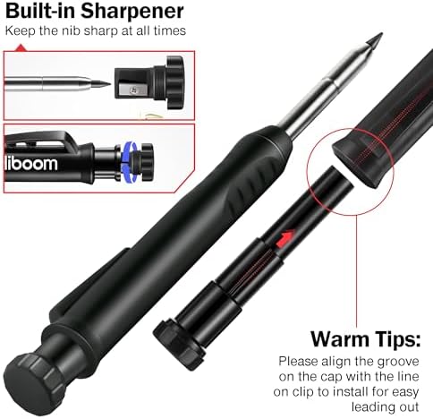 - Mechanical pencil: the carpenters pencil do not slip out of the fingers and repetitive tracings cause less pain; The pen clip design can be easily attached to the pocket, easy to use and not easy to lose, gaining in efficiency, proper for construction and bricklayers