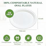 Vplus 100% Compostable Oval Paper Plates 12 inch 125 Pack Super Strong Disposable Paper Plates Bagasse Natural Biodegradable Eco-Friendly Sugarcane for BBQ, Party, Dinner, and Picnic