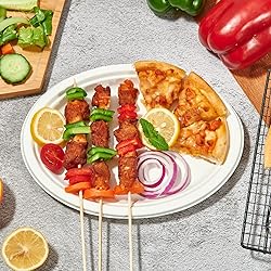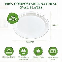Good For Environment: Made from sustainably sourced sugarcane fibers, these oval paper plates are 100% biodegradable and suitable for composting for easy disposal,making these plates good for the environment Heavy-Duty Plates: With no plastic or wax lining it's designed with superior strength and is cut-resistant and leak-resistant.Plus, these disposable plates are also microwave and freezer safe Bagasse Sugarcane Fiber: These 12.6*10 inch plates are made by reusing the natural fibers of Sugarcane, this material is 100% Sustainable and Renewable for the environment Host Parties With Ease:With its premium quality, this dinnerware is ideal for Family events, Schools, Restaurants, Office lunches, BBQs, Picnics, buffet parties, Outdoor, Birthday parties, Weddings, and more