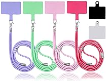 Premium Material: The phone strap is made of nylon material, soft and skin-friendly. With retractable length and detachable rust-proof metal hook. Colorful pads comes with the lanyard is made of TPU cured cloth, smooth. And you could also choose to use crossbody strap or neck strap according to your own needs. Wide Usages: The phone strap crossbody could release your hands when it's inconvenient for you to hold your phone. And it could help to attach to your keys, ID card, name badge, thread wallet, hotel cards and other parts, portable and no need to worry about missing. Easy to Assemble and Detach: No tools required, you just pass the pad through charging hole of fully covered phone case, then insert your phone and connect to the lanyard. Compatible for most smartphones with a full coverage case(not support half coverage phone case), and keep your phone in safe condition and easy using. Plastic Lanyard Tether Tab with Metal Ring: The sticker with ring Made of lightweight PVC material and premium metal, no easy to fade, break or deform. Strong anti-stress and no adhesive design, no glue remain after removal. Cooperating with lanyard could protect your phone from accident dropping. The metal ring could improve the device security assurance and also be used to fixed your keys, wallet etc. Packing List: 4 x adjustable neck straps (purple/red/green/pink), 4 x colorful phone cloth patches , 2 x PVC phone tether tab with metal ring. They could avoid the loss and drop of the mobile phone, the thin pad could support corded and wireless charging without being removed, without blocking the charging port, lock button or camera.