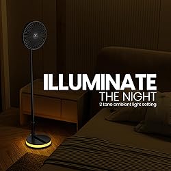 - A 4 speed foldable travel fan that is rechargeable, wireless, and an extendable portable wireless fan. Safely keep your laptop and your face from melting in the hot weather. Perfect for home, kitchen, and office use. Awesome standing fan for adventures and journeys. you can use it out for BBQs, picnics, and outdoor activities. Super easy for traveling and storing in any closet, car, or small space. The fan is very convenient for those who have active lifestyles and busy environments, staying cool has never been so easy. It comes with a travel case, made with a solid waterproofed 600D EVA material. The inner part is designed with velvet and a mesh pocket for storing the charging cable. Other cable-free wireless fans run out of battery in just a few hours. Venty fan battery lasts up to 48 hours per charge. It has a magnetic wireless remote-control so you can control Venty from anywhere in the room. Experience the Venty 4-Speed oscillating rechargeable battery-operated fan. It oscillates 120°, rotates 180°, and only weighs 2.6lbs. Use it on your travel. You can enjoy up to 48 hours of cooling fan action with every charge. 16,000mAh battery also lets you charge your phone and other devices 6 times. Enjoy cool air blowing on a hot beach, crowded train, and of course at work. The foldable fan comes with a lightweight water-resistant travel case. The 3.5” x 8” dimensions mean you can carry a new travel buddy where you like. Give your room a rich and colorful ambiance with the warm 3-level white lights.With detachable wireless remote adjusts, speed, oscillation, and lights on/off.