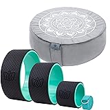 Florensi Yoga & Meditation Bundle | Grey Meditation Cushion & Yoga Wheel 3 Pack